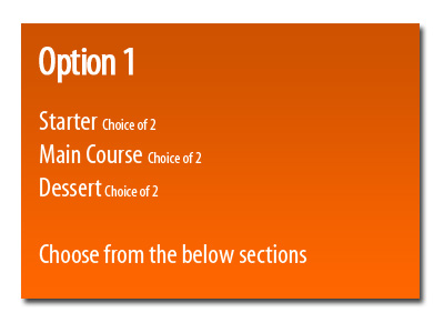We have menus to cater for all party sizes and styles. Below you will see some example menu's and should you wish to create your own menu you can.
