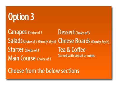 We have menus to cater for all party sizes and styles. Below you will see some example menu's and should you wish to create your own menu you can.